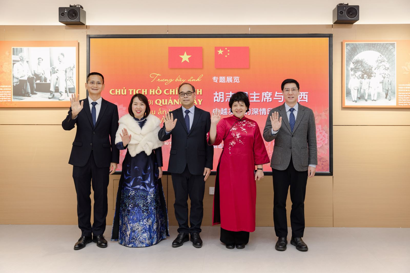 Trong khuôn khổ hoạt động, Giám đốc Trương Đức Sơn đã giới thiệu với các đại biểu về quá trình phát triển của Trung tâm Văn hóa Trung Quốc tại Hà Nội; các vị khách mời cùng tham quan triển lãm ảnh chuyên đề “Chủ tịch Hồ Chí Minh và Quảng Tây, Trung Quốc”, qua những hình ảnh tư liệu quý giá, cùng nhau ôn lại những ký ức đỏ vượt qua không gian và thời gian. Bên cạnh đó, toàn thể đại biểu đã cùng theo dõi một bộ phim tư liệu ngắn, tái hiện dấu chân và những câu chuyện của thầy trò tham gia trại nghiên cứu học tập đỏ tại Quảng Tây. Ống kính chầm chậm lướt qua, hòa quyện vẻ đẹp non nước hữu tình của vùng Bát Quế, chiều sâu lịch sử và nụ cười chân thành của các bạn trẻ; mỗi khuôn hình đều là minh chứng sinh động cho tình hữu nghị hai nước, mỗi ánh nhìn là thêm một lần trái tim xích lại gần nhau. Dù chỉ là một thước phim ngắn, nhưng đã gợi dậy biết bao ký ức; đối với thầy trò tham gia, những rung động và xúc cảm thu nhận được tại Quảng Tây đến nay vẫn còn vẹn nguyên, như mới diễn ra trước mắt.