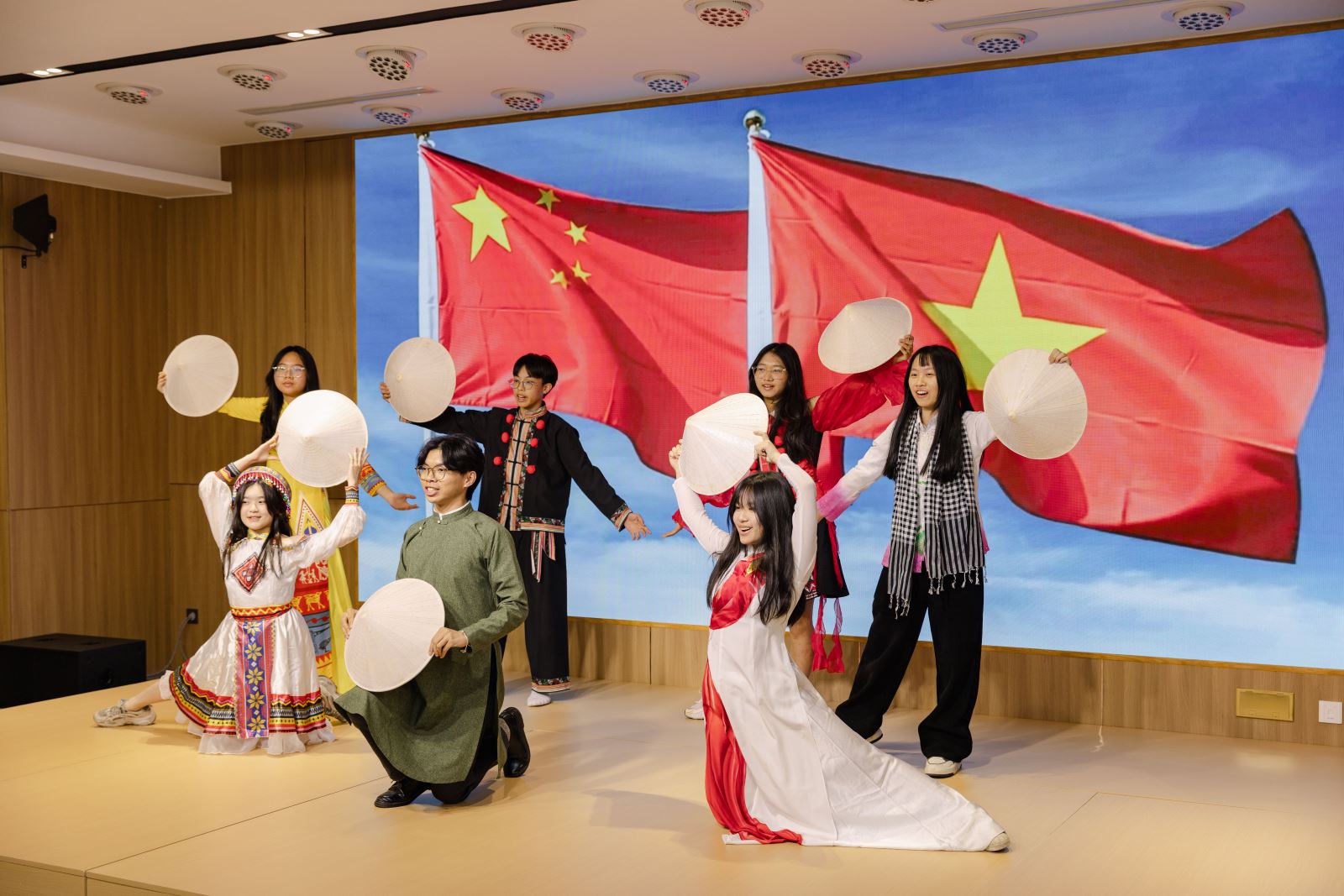Chương trình được mở màn bằng các tiết mục nghệ thuật tràn đầy sức sống tuổi trẻ. Hai sinh viên Lưu Hiểu Vân và Vương Khả đến từ Đại học Ngoại ngữ Ngoại thương Quảng Đông mang đến tiết mục múa “Xuyên Lâm Hưởng”, với những động tác mềm mại, uyển chuyển, khắc họa vẻ đẹp ý cảnh của non nước cổ điển Trung Hoa, như dẫn dắt khán giả băng qua rừng xanh thung lũng, lắng nghe bản hòa ca hài hòa giữa thiên nhiên và con người; học sinh Nguyễn Tâm Anh của Trường THPT Hà Nội – Amsterdam trình diễn bản nhạc “Hảo Hán Ca” bằng đàn tranh Việt Nam, khéo léo kết hợp khí phách anh hùng truyền thống Trung Quốc với âm hưởng âm nhạc dân tộc Việt Nam, tiếng đàn sôi nổi thể hiện sinh động sức hấp dẫn độc đáo của sự giao thoa văn hóa hai nước; các học sinh như Ngô Uyển Như đến từ Trường THPT chuyên Ngoại ngữ trực thuộc Đại học Quốc gia Hà Nội biểu diễn tiết mục múa “Made in Vietnam”, với dàn dựng hiện đại tôn vinh bản sắc văn hóa Việt Nam, những bước nhảy tràn đầy năng lượng toát lên sự tự tin của tuổi trẻ; lưu học sinh Trung Quốc Mao Gia Lặc đến từ Đại học Hà Nội đã thể hiện đầy cảm xúc ca khúc chủ đề “Còn gì đẹp hơn” của bộ phim kinh điển Việt Nam “Mưa đỏ” bằng tiếng Việt lưu loát và giọng hát truyền cảm, truyền tải sự cộng hưởng cảm xúc vượt qua núi sông, khiến khán phòng vang dội những tràng pháo tay không dứt.