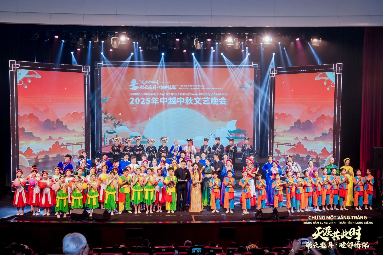 整场晚会以“风月同天”“玉兔银蟾”“金桂流芳”“心梦同圆”四大篇章徐徐展开,汇聚中越两国传统艺术与现代经典,呈现出一幅幅绚烂多彩的文化图景。