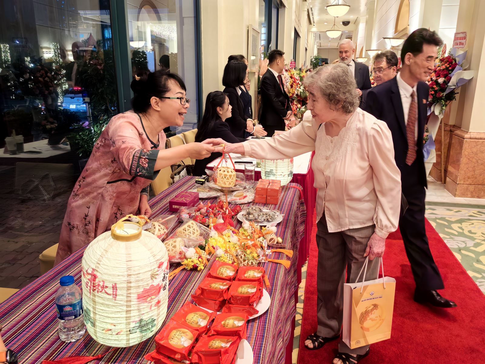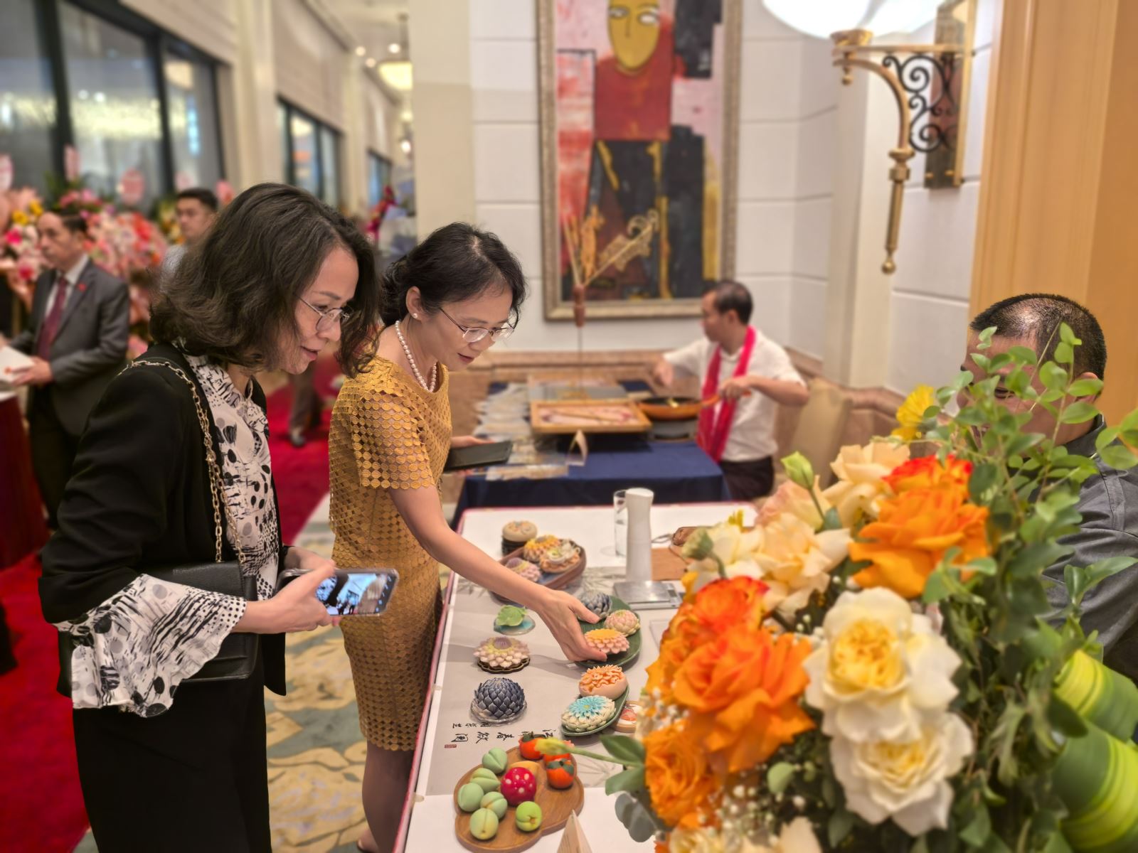招待会上,由河内中国文化中心与云南广播电视台、云南省南亚东南亚区域国际传播中心联合推出的“七彩云南·非遗华彩”文化展示艺术展演,成为展现中越人文交流丰硕成果的靓丽风景线,以其独特的文化魅力与沉浸式互动体验,深深吸引了与会嘉宾。