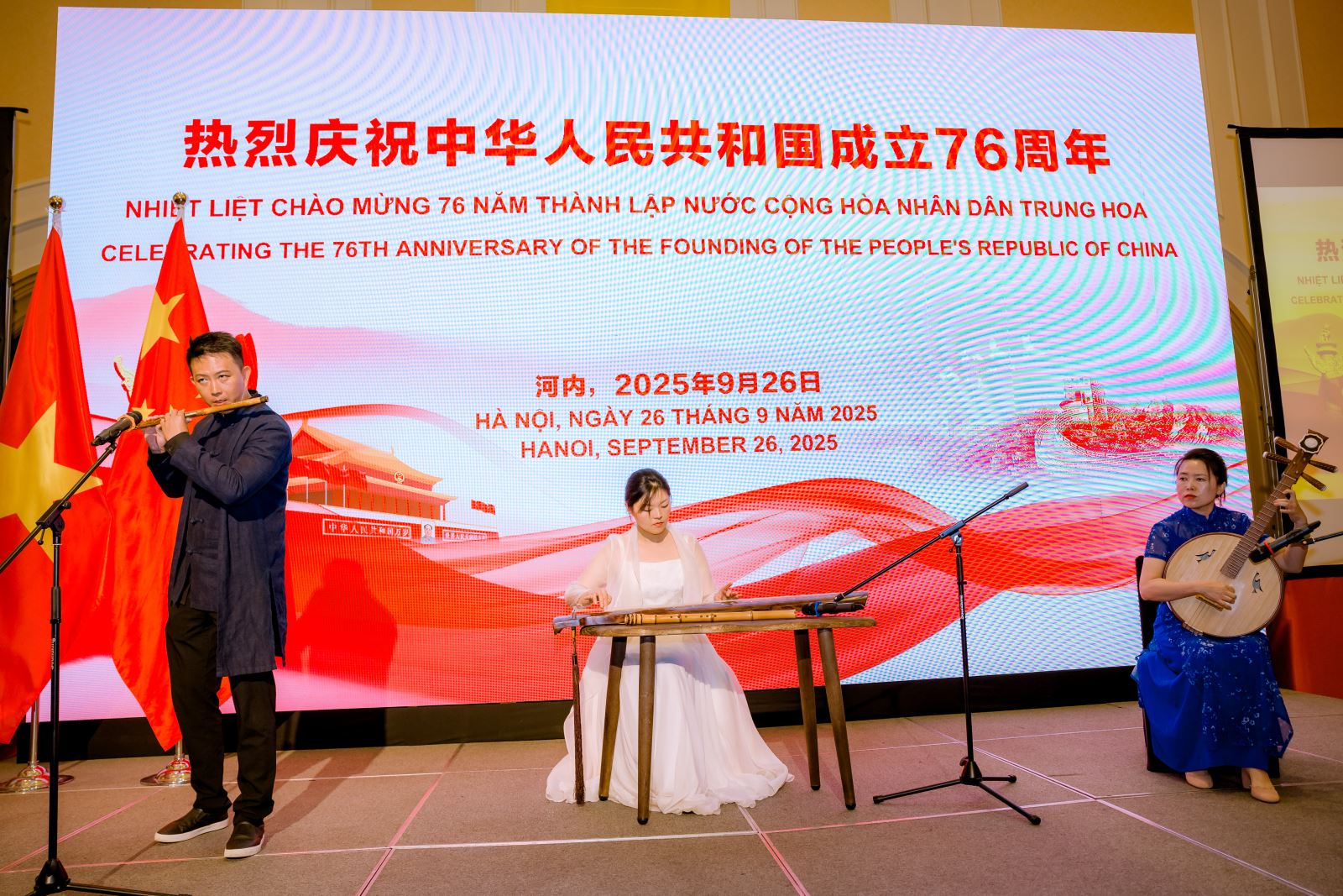9月26日晚,中国驻越南大使馆在河内举行国庆76周年招待会。越共中央书记处书记、代理外交部长黎怀忠等越南党政军群各部门负责人、各国驻越使节、在越中资机构及留学生代表等近500人出席。