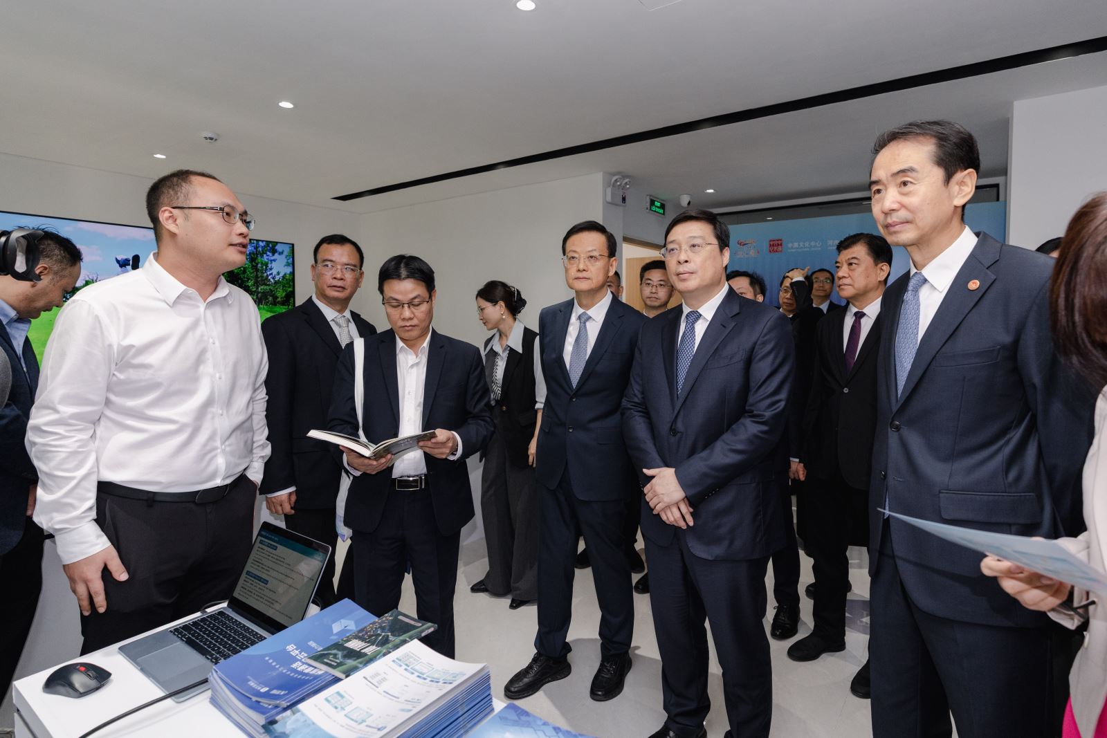 在热烈的氛围中,黄道疆副部长、韦韬主席先后上台致辞,韦韬主席郑重宣布“广西文化旅游科技周”活动正式启动。启动仪式结束后,中越双方领导嘉宾共同参观此次活动特别设置的“胡志明与广西”专题图片展、广西科技AI展等展区。