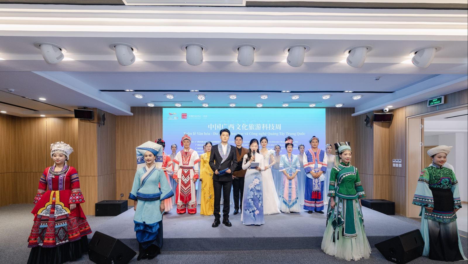 山水相连同弦歌,文明互鉴共潮生。11月26日,由广西壮族自治区文化和旅游厅、外事办公室、大数据发展局与河内中国文化中心联合主办,广西旅游发展集团、广西文化产业集团共同承办的“广西文化旅游科技周”活动隆重启幕。当千年壮乡风情与数字科技浪潮在红河之滨相遇,一场以文化为魂、旅游为桥、科技为翼的中越文明对话,在初冬时节的河内,绽放出了跨越山海、桂风越韵的时代光华。