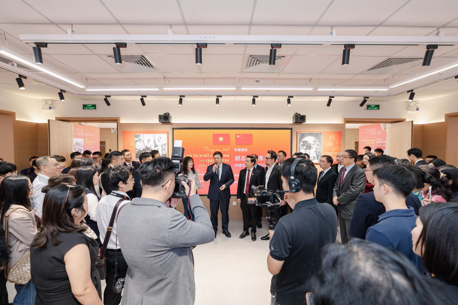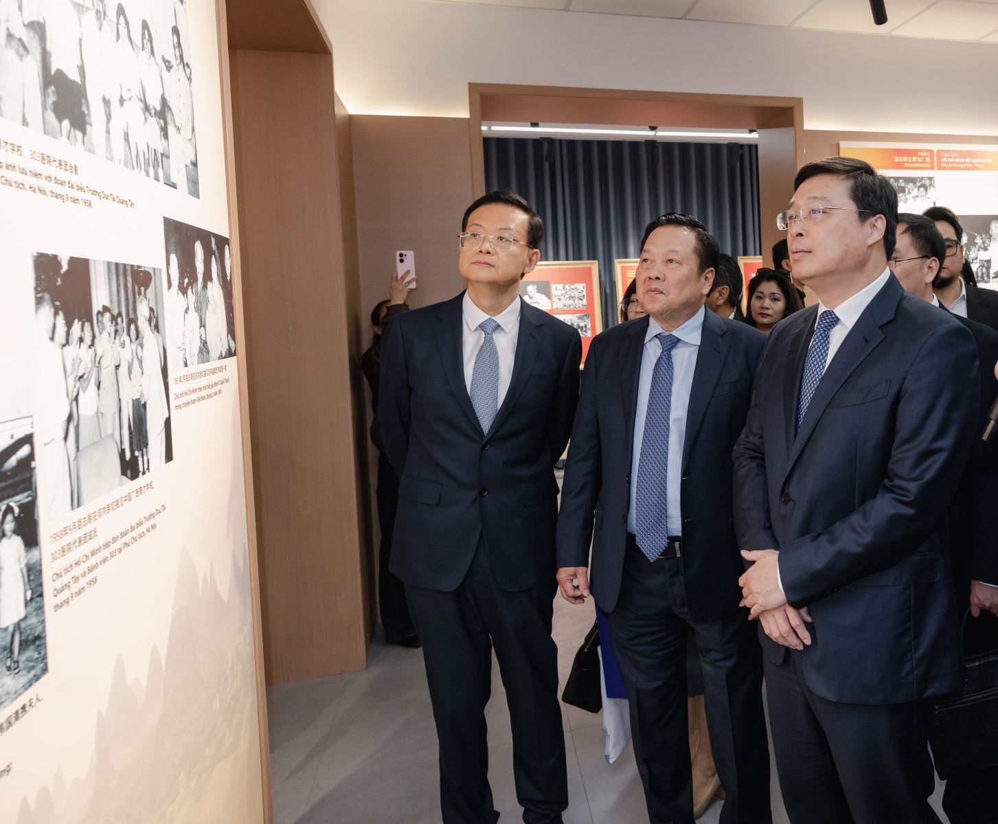 在“胡志明与广西”专题图片展区,一幅幅珍贵的历史影像,如时光切片,静述着革命时期胡志明主席与广西的点滴往事与深厚情谊,令观者无不驻足凝神。韦韬主席与越南嘉宾缓步其间,仔细观看,并与现场一同观展的几十位留桂越南校友代表亲切交谈,细问学业生活,畅谈归国发展,并殷切寄语:“欢迎大家常回广西,看看日新月异的发展变化,更希望大家发挥才干所学,为促进桂越乃至中越友谊和各领域务实合作贡献智慧与力量。”