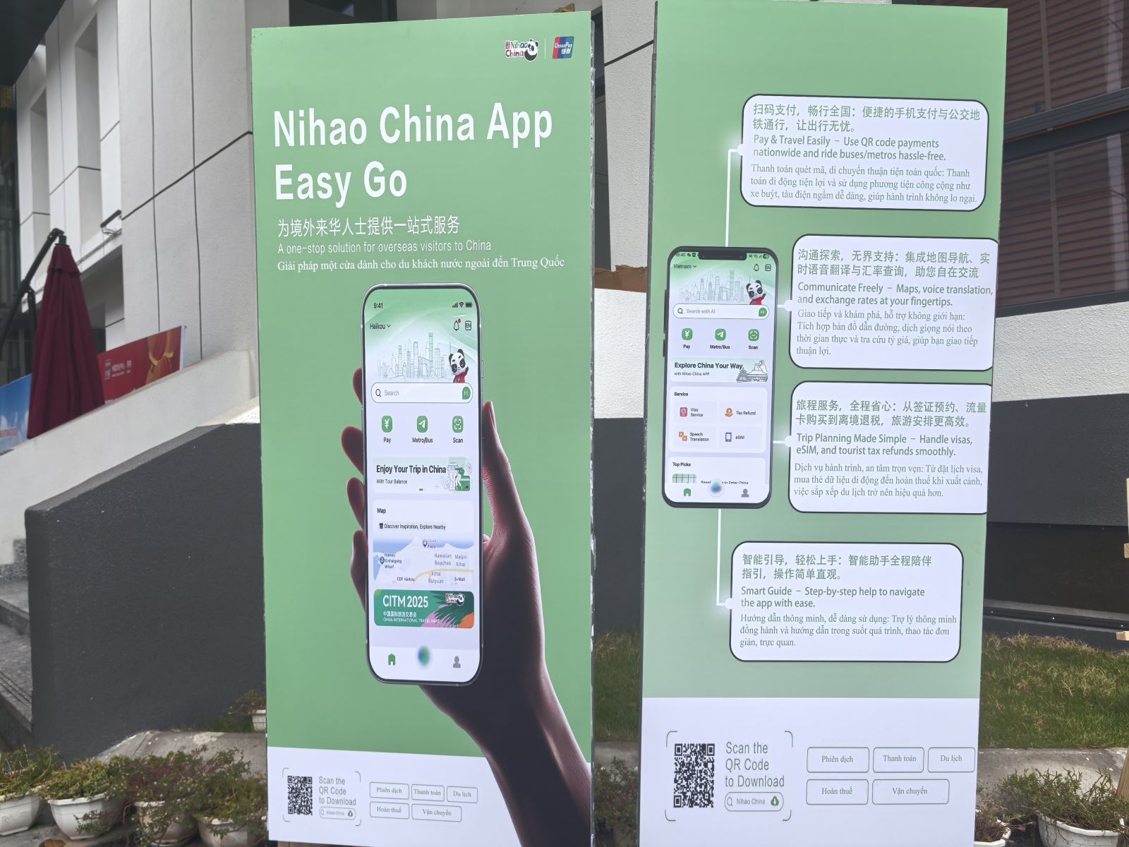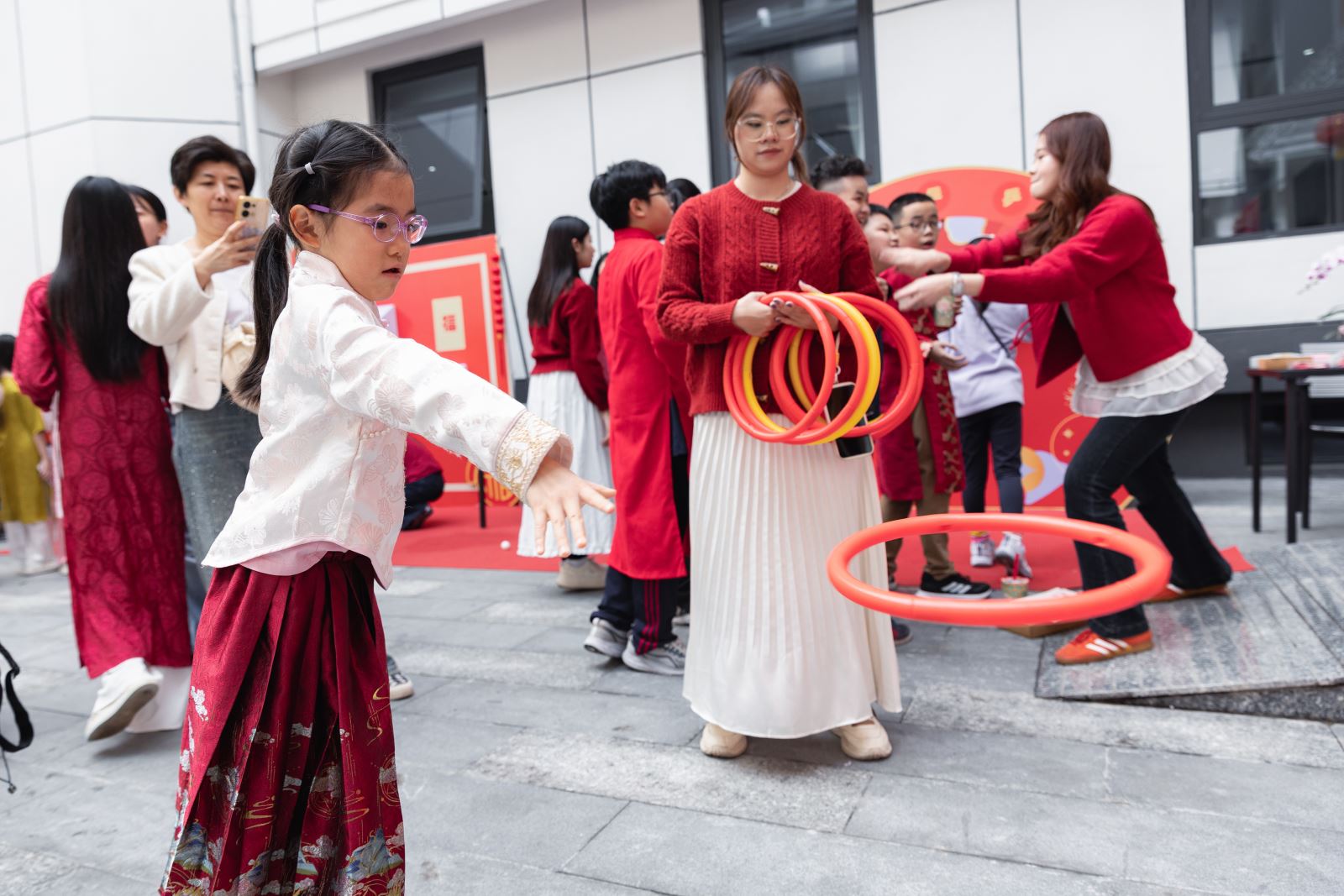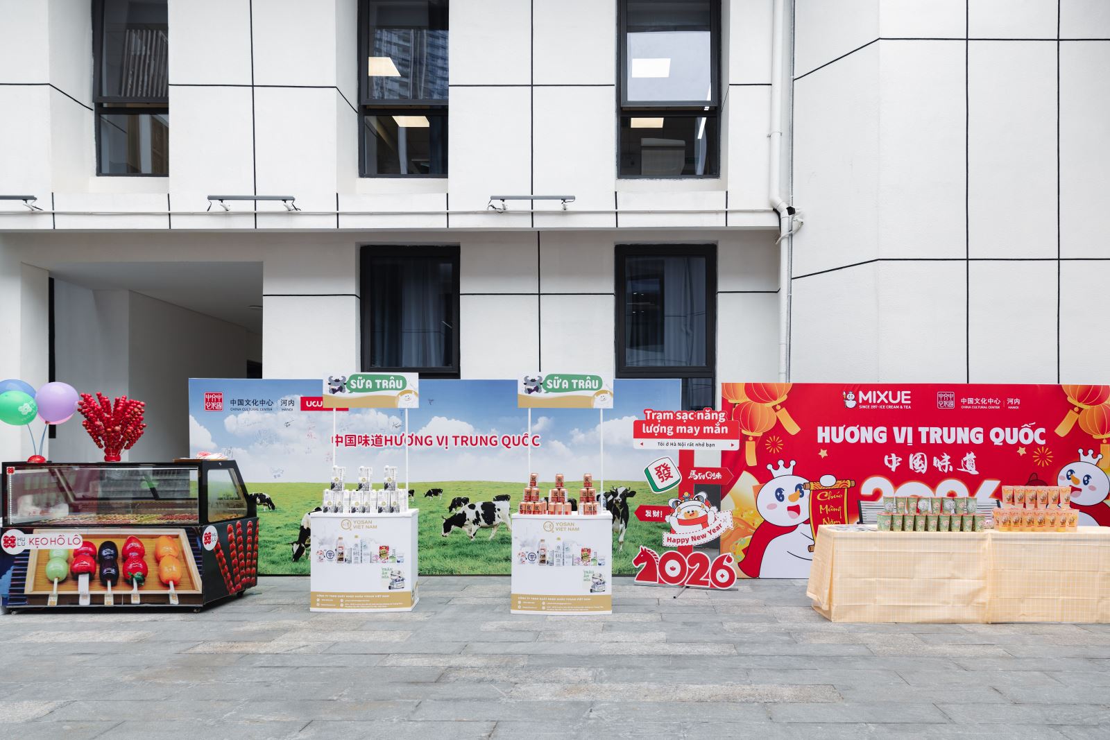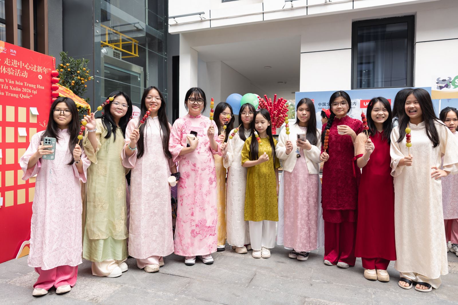 当天下午,河内中国文化中心院内张灯结彩、年意如织,午后暖阳映出人影憧憧、笑语盈盈的喜庆氛围。步入中心庭院,热烈而典雅的中国红映入眼帘,恍若踏入一场穿越时空的新春雅集。中国结、红灯笼、中式窗花、金桔树......年节物象俯拾皆是。庭院两侧,“你好!中国”APP与“马舞新春——丙午马年全球生肖文化大联展”主题宣介图片阵列而立,错落如屏。骏马昂首、蹄下生风的视觉意向与现场节日氛围相映成趣,一步一景,皆是岁时之礼,铺开一幅东方美学的迎春图卷。