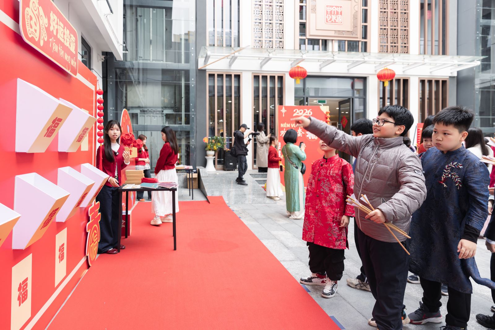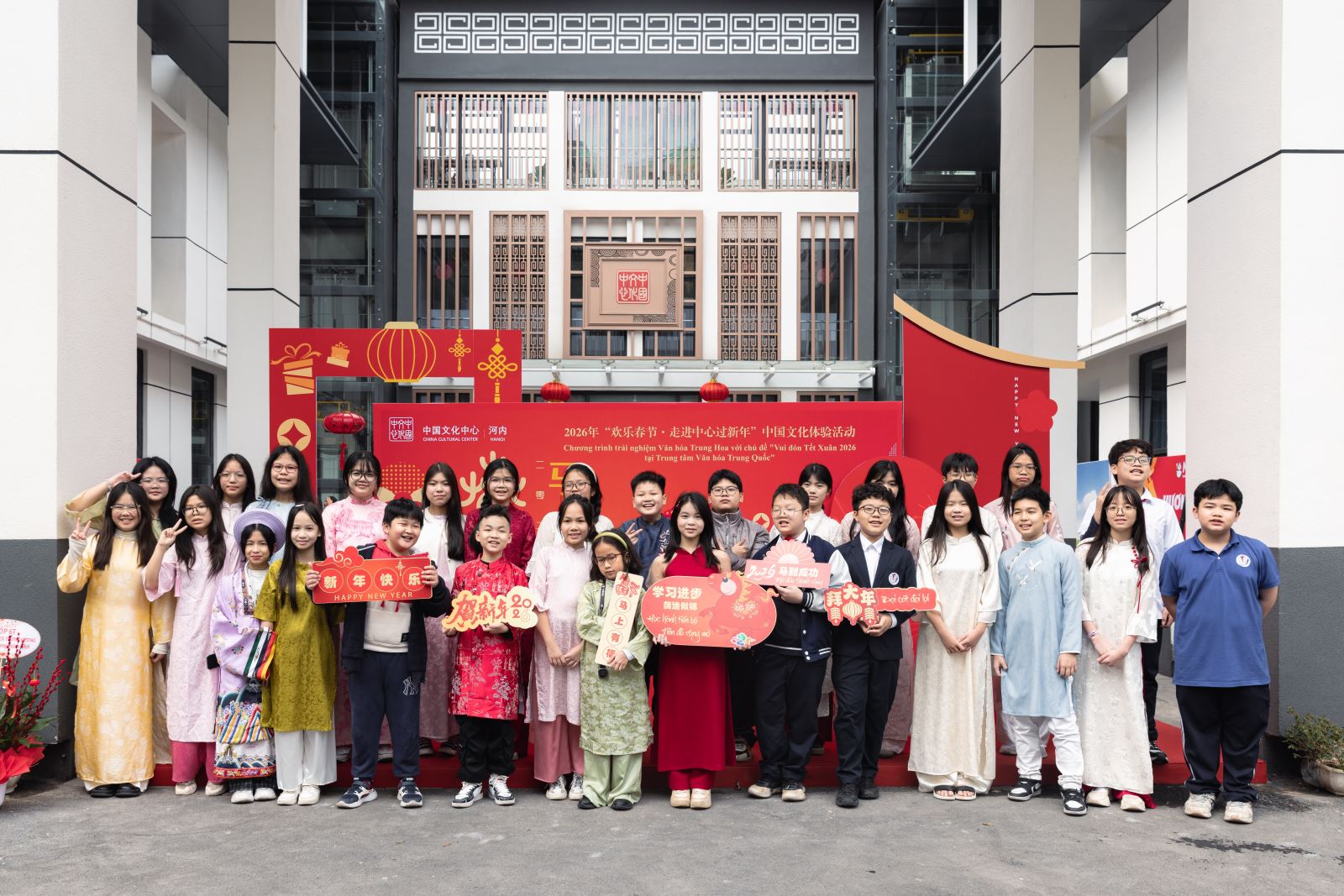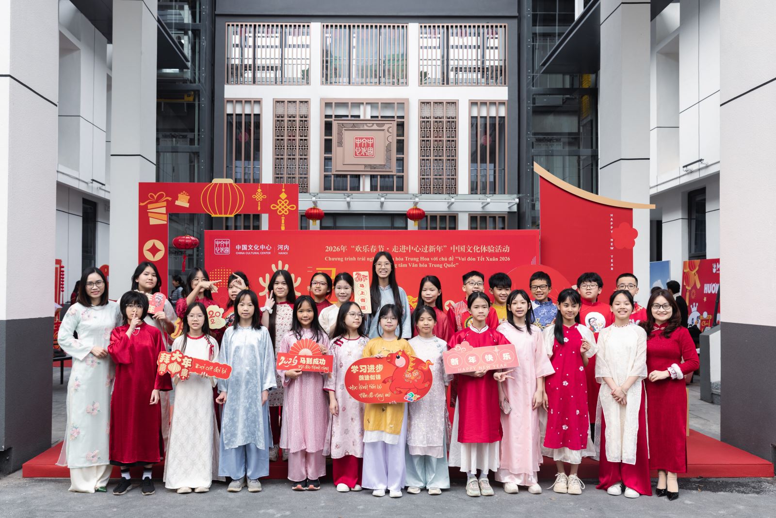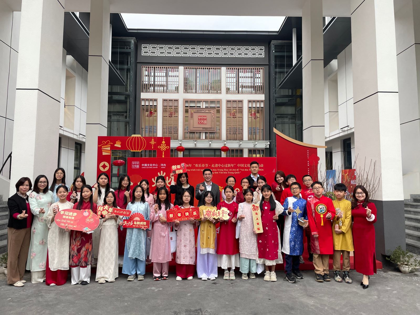 2月11日,在农历新春佳节即将来临之际,2026年“欢乐春节·走进中心过新年”中国文化体验活动在河内中国文化中心成功举行。中国驻越南大使馆公使王群及驻越外交官家属、河内中国文化中心主任张德山以及越南河内市段氏点初中、征王初中师生代表,在越华人华侨、留学生代表、中越友好人士、新闻媒体机构代表近170人齐聚一堂,在暖冬和风中触摸中华年俗的温度,于马踏春风的韵律里共叙中越人文相亲的绵长。活动得到中央广播电视总台亚非中心、上海悠纯牧业科技有限公司(越南YOSAN公司)、HULU冰糖葫芦、蜜雪冰城越老柬办事处等单位大力支持。