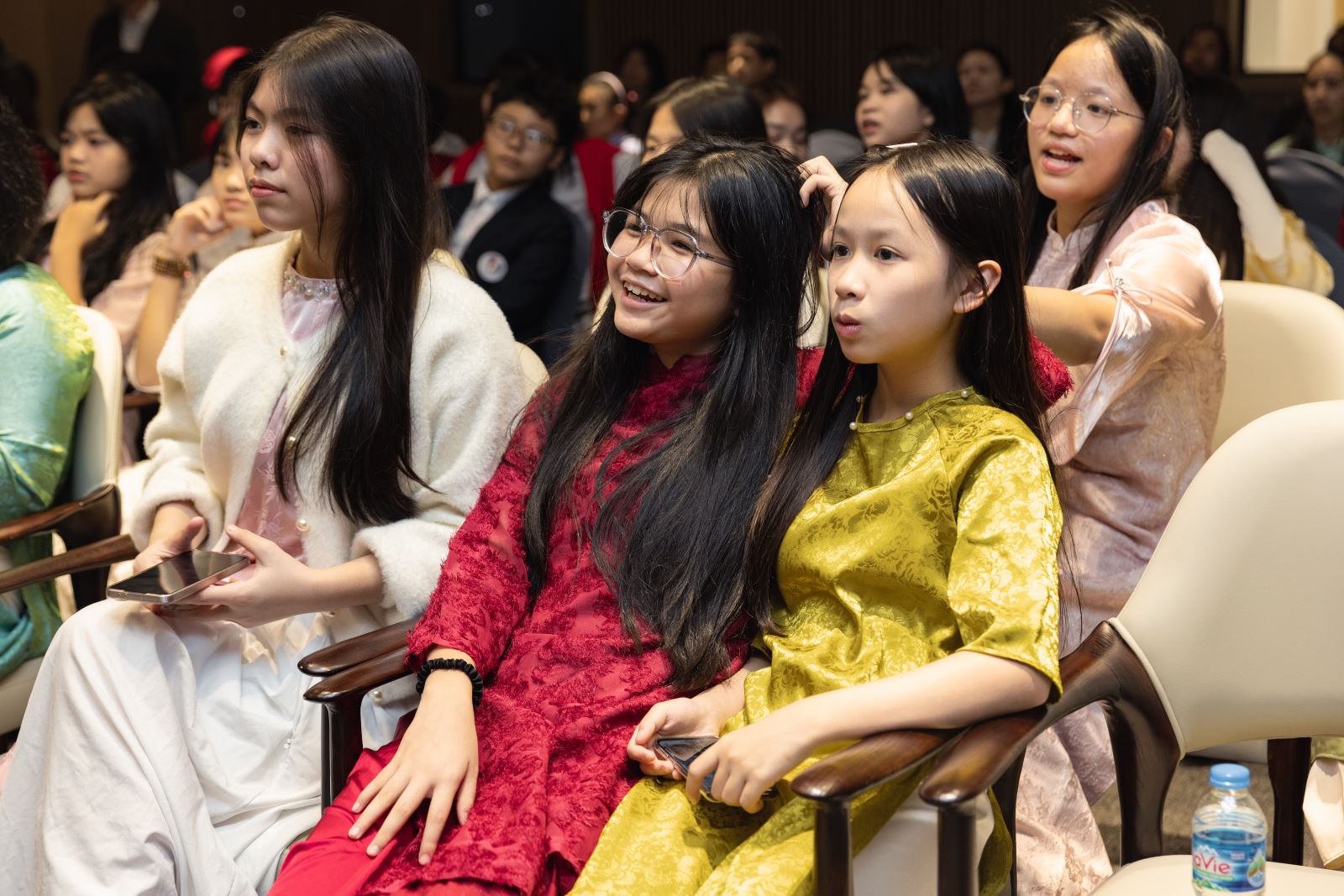 此外,当天还举行了观影活动。二楼多功能厅内,中国春节文化短视频以凝练镜头勾勒岁俗脉络,从守岁到拜年,从舞狮到灯会,帧帧如诗。总台春晚宣传片则以高燃节奏,将万里之外的除夕欢腾压缩于数分钟,异国少年亦能共感那一刻的万家灯火。随后放映的动画电影《浪浪山小妖怪》——这部在越南连夺两周票房冠军的佳作,此刻正在小观众心间播下又一颗中国文化的种子。银幕上小妖怪滑稽历险,台下观众笑声则此起彼伏。
