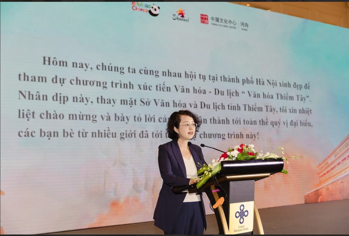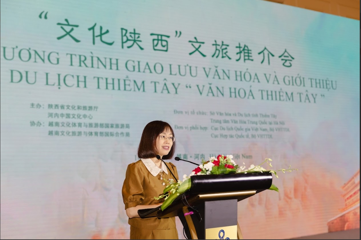 张德山主任在致辞中回顾了今年7月,在河内中国文化中心与陕西省文化和旅游厅的精心组织下,多家越南知名旅行商赴陕西开展踩线活动的情况。他表示,今年恰逢中越建交75周年暨“中越人文交流年”,河内中国文化中心将继续携手扩大中国各省市与越南文旅互动交往“朋友圈”,积极搭建双边文化交流“友谊桥”,共同打造双边旅游合作“共同体”。面向未来,相信陕西与越南将以此次推介会为契机,在新的起点上持续深化交流,共同谱写两地合作美好愿景,为助力构建具有战略意义的中越命运共同体写下生动的注脚。