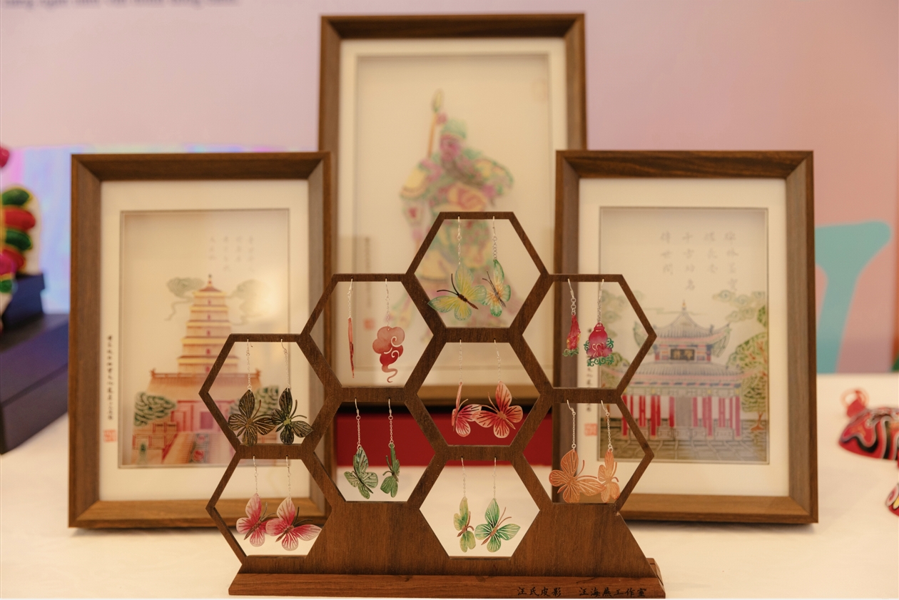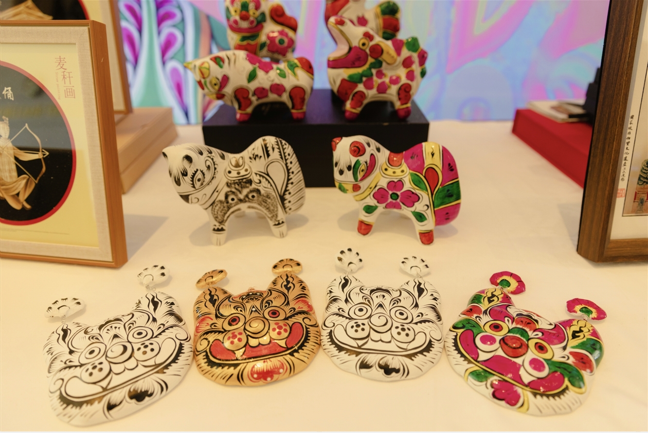 活动开始前,与会嘉宾们共同参观了陕西文旅摄影图片展和非遗手工文创展示区。一幅幅作品捕捉了黄土高原的辽阔、古城墙的余晖与民间匠人的专注神情,光影间尽显陕西自然与人文之美。非遗展区中,华县皮影活灵活现,麦秆画、社火脸谱、凤翔泥塑、西秦刺绣、耀州窑陶等非遗作品琳琅满目,每一件都融合了传统符号与现代审美,引得嘉宾频频驻足欣赏、交流询问,深切感受陕西从文化资源到创意成果的生动转化。