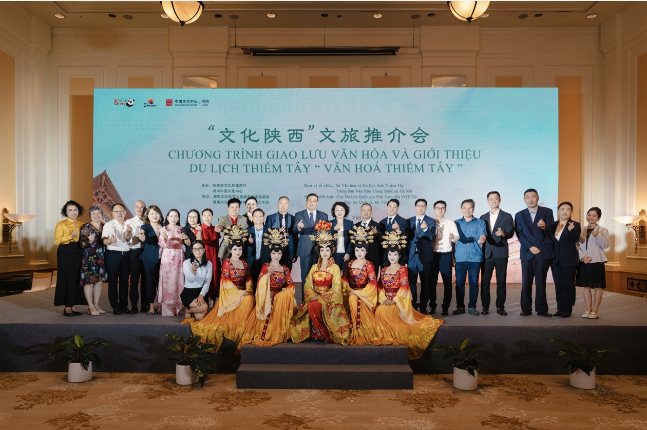 千古陕西韵,万里会宾朋。9月16日,由陕西省文化和旅游厅、河内中国文化中心共同主办的“文化陕西”文旅推介会在越南首都河内成功举办。中国驻越南使馆参赞邢久强、陕西省文化和旅游厅副厅长刘海荣、河内中国文化中心主任张德山以及越南文化体育与旅游部国家旅游局副局长阮氏花梅出席活动并致辞。越南河内市旅游厅副厅长阮陈光以及中越政企界、文旅界和新闻媒体代表近120人齐聚一堂,共赏山水神韵,共谋文旅盛事。